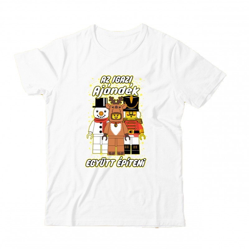 Szerinted létezik a Télapó? Vagy a Jézuska? Erre sajnos nem tudjuk a választ, de abban biztosak vagyunk, hogy ha te is imádod az Ünnepeket, akkor a Az igazi ajándék - együtt építeni mintás pólónkban nem fogsz csalódni!