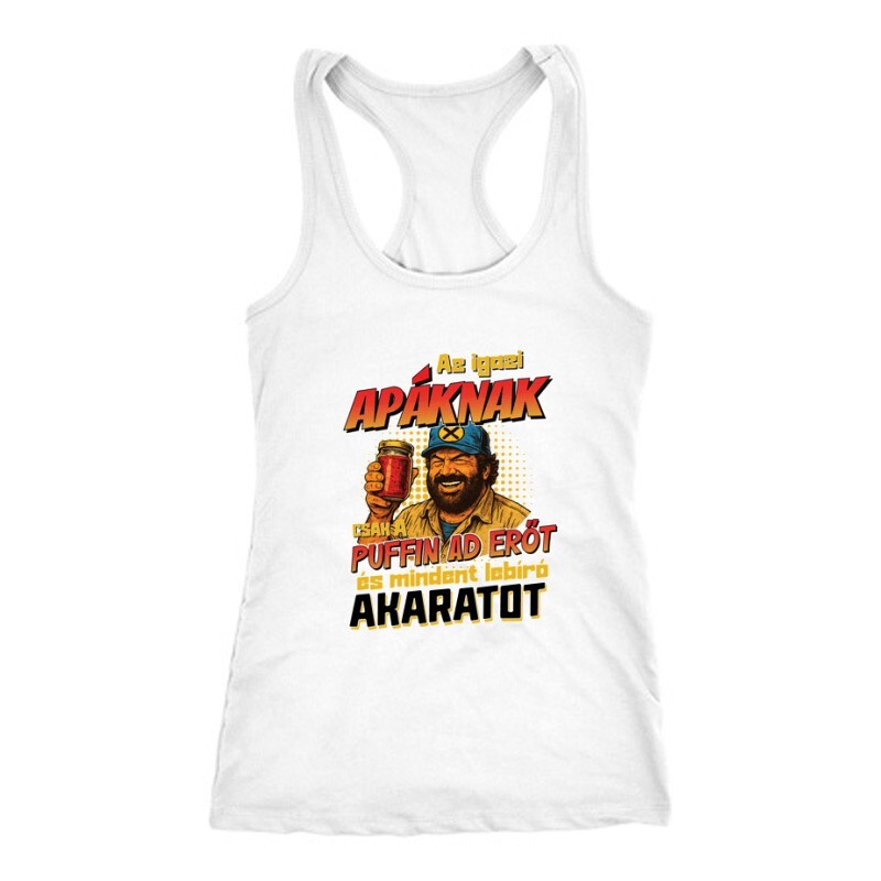 Bud Spencer és Terence Hill Az igazi apáknak csak a puffin ad erőt mintás póló azoknak, akik imádják a két nagy pofonosztót!