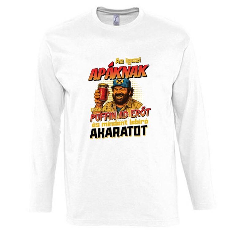 Miért jó választás az Bud Spencer és Terence Hill Az igazi apáknak csak a puffin ad erőt mintás póló?