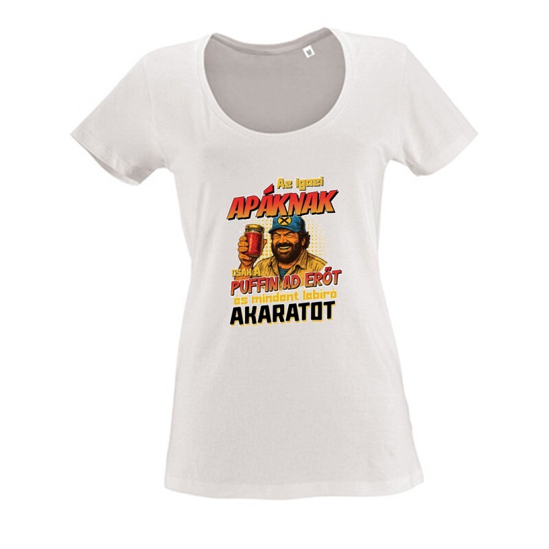 Bud Spencer és Terence Hill Az igazi apáknak csak a puffin ad erőt mintás pólóink megrendelhetők női, férfi és gyerek fazonban egyaránt S-től 3XL-es méretig.