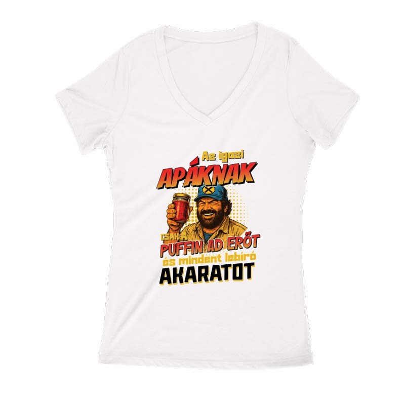 Az igazi apáknak csak a puffin ad erőt Női V Kivágott póló
