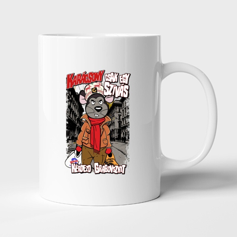 Karácsony csak egy szívás Kérdezd Grabovszky-t mintás bögre - mert minden nap egy új, izgalmas kaland