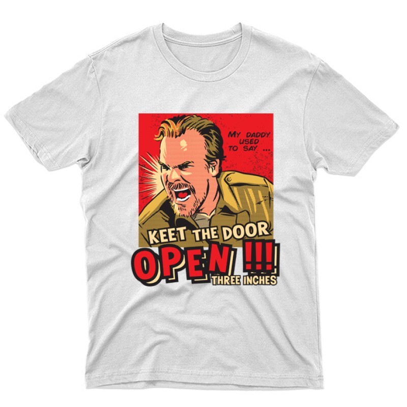 Ha néha Te is hellyel lefelé találod magad, vagy úgy tűnik másik univerzumba cseppentél, esetleg különleges erőt érzel magadban, akkor a Stranger Things Keet the door open mintás póló a Neked való választás!