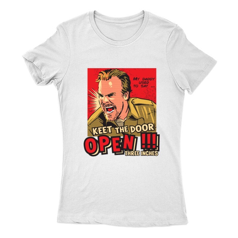 Ha néha Te is hellyel lefelé találod magad, vagy úgy tűnik másik univerzumba cseppentél, esetleg különleges erőt érzel magadban, akkor a Stranger Things Keet the door open mintás póló a Neked való választás!