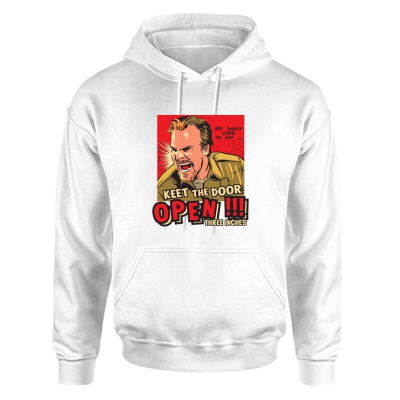 Lehetsz nyugodtan "Juharfa utcai különc", vagy akár a "kém", egy ilyen különleges pólóban az "Agyszívó" sem találna rajtad fogást, és pláne nem leszel "Sokból egy"! Felveheted a harcot akár egy Demogorgonnal is (vagy az osztályfőnökkel) és megmutathatod mennyire egyedi és különleges személyiség vagy! Ráadásul egy Ilyen pólóban egy tízes skálán is lehetsz 11! Ha pedig nem tudod, mit adhatnál a haverok szülinapjára ajándékba, akkor a Stranger Things Keet the door open mintás póló tökéletes választás lesz! Ha már minden haverodnak van sorozatos pólója, mehettek együtt bandázni! Szülinapra, névnapra, vagy csak úgy...ezzel nem lőhetsz mellé!