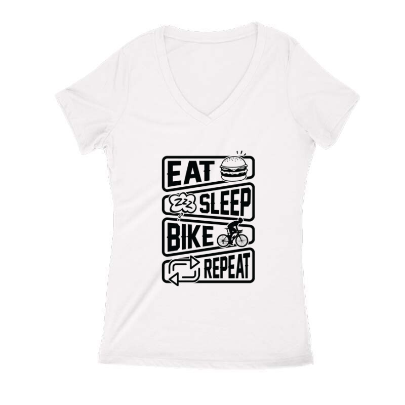 Eat sleep bike repeat Női V Kivágott póló